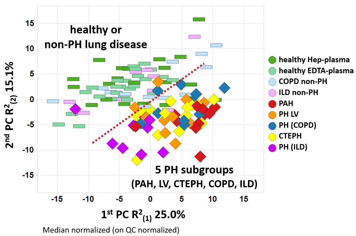 Prognosis of PH is poor and both diagnosing and treating patients is challenging. The gold standard for diagnosing PH is right-sided heart catheterization, however this is an invasive procedure. Reliable, validated biomarkers would have the advantage as they can be assessed using samples acquired from a simple blood draw.