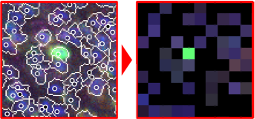 Cell2Grid is a new image compression algorithm that creates low-resolution, cell-based tissue images. After cell segmentation, individual cells and their features are placed on a target grid. This way, every pixel represents exactly one biological cell and individual cell properties are preserved. Final images are up to 100-times smaller without loss of relevant information.